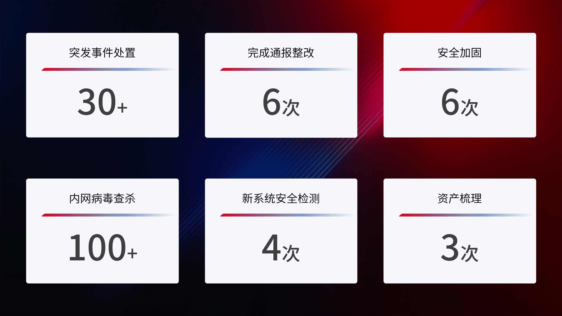 网络安全加固与风险管理:通过技术加固手段,,,,如加强区域隔离,,缩减攻击内网横向移动的范围;优化现有网络安全管理制度,,降低网络威胁暴露面,,减少被黑客攻击的可能性。。。。